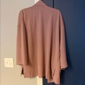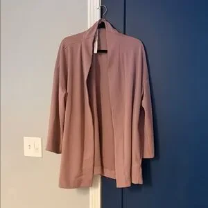 Elevate your style with this chic pink open-front jacket. Perfect for layering, this versatile piece adds a touch of elegance to any outfit. Like new. Missing tie.