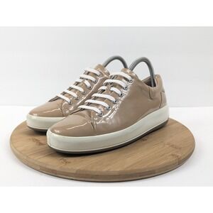 The Ecco Soft 9 Platform Women's Shoes in size 8 are stylish and comfortable slip-on sneakers made of patent leather with a cap toe design. These versatile shoes are suitable for activewear, casual outings, and workwear, featuring a lightweight and water-resistant construction for optimal performance. The beige color and solid pattern make them a classic and athleisure-themed addition to any wardrobe, with a low-top shaft style and standard shoe width for a comfortable fit. Designed by ECCO, these shoes are part of the limited edition soft 9 line, crafted with high-quality leather and rubber outsole for durability.
