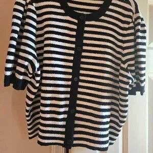 XL Marled black/white stripe cardigan, new without tags. Very cute transition piece winter to spring. Cute for any age.