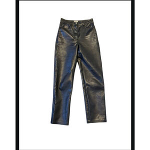 Aritzia Wilfred Leather Straight Leg High Waist Black Pant Size 4