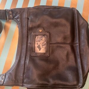 This is a buttery soft, black, leather vintage Fossil handbag with multiple pockets and zippered area areas Purse size is approx 12”x10”x3”. When worn crossbody style as designed, the top of the purse, sits about 18 inches from the top of one’s shoulder. Strap is slightly adjustable. Interior of purse is lined with its original black cloth. This purse is in very good shape. There is one tiny imperfection. It is circled in the photos, but it seems like likely that it could be polished out.