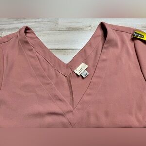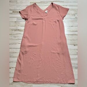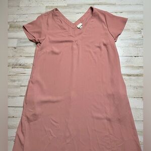 A New Day Dress Women Medium Basic Shift Blush Pink Short Sleeve V-Neck Pockets