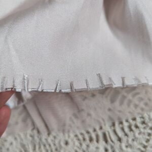 Upper part of inside layer is soft polyester, bottom half is satin with fringe on bottom hem.