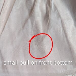 Great condition except for one small rip and one small pull on bottom front of tulle. Not noticeable when worn.