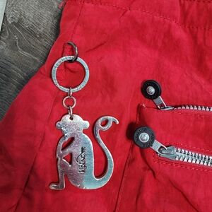 Vibrant red tote bag by Kipling. Features silver zippers and charm. Ideal for daily use.