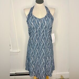 NWT Krimson Klover Piper Geo Print Mini Halter Dress Blue and White Floral Large