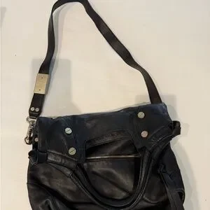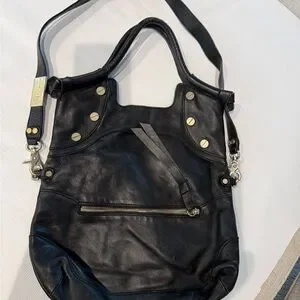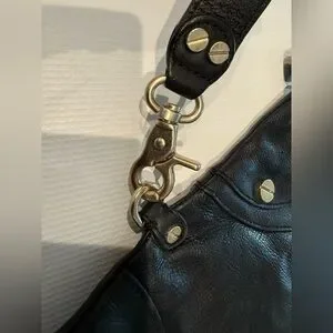 Foley + Corinna Black Leather Shoulder Bag with Silver Accents