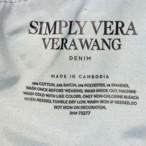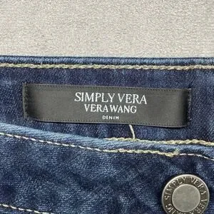 Simply Vera Vera Wang denim capri jeans in a dark wash. Designed with a mid-rise fit, these jeans offer a classic and versatile look. The front features standard pocket styling and a button and zipper closure. The back showcases traditional pocket details with reinforced stitching.