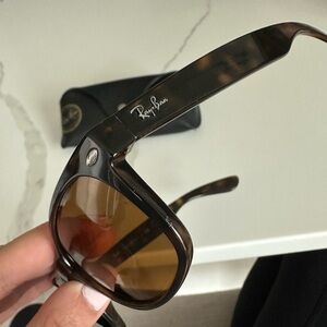 Chic Ray-Ban sunglasses featuring sleek brown frames and warm brown lenses. Includes a stylish black case.