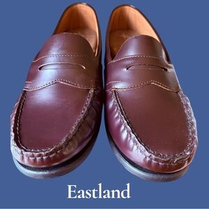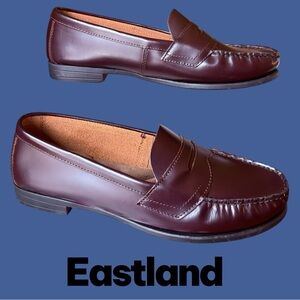 Elegant burgundy loafers by Eastland. Sleek design with a comfortable fit. Genuine leather upper. Memory foam insole. Rubber sole.