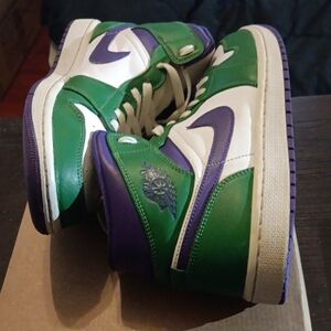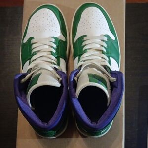 Vibrant Rare Jordan 1 Mid Incredible Hulk with green and purple accents. Ideal for making a statement. Men's 8 Women's 9.5