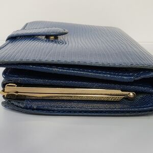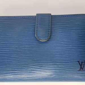 Louis Vuitton Epi leather kisslock wallet in blue. Kisslock closure works great and snaps securely. Exterior Epi leather is in good shape.
