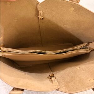 This elegant cream tote bag is perfect for any occasion. Its sleek design and neutral color make it a versatile addition to your wardrobe.