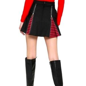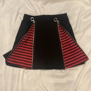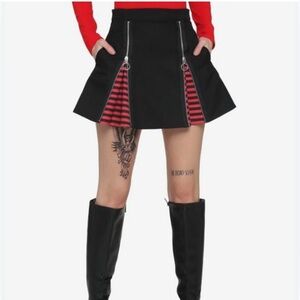 Hot Topic Black & Red Stripe Zipper Insert Skirt With Pockets