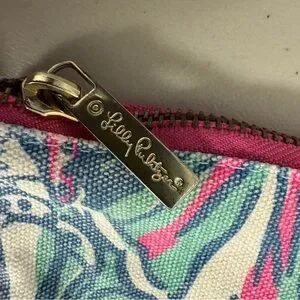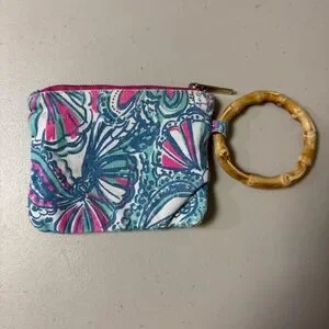 LILLY PULITZER Purse Wallet Wristlet Bag Bamboo Handle Clutch Make-up Canvas Min