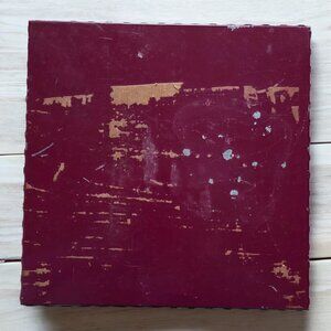 The upper part is a burgundy with a hand painted floral design. There are some imperfections on the top as well.