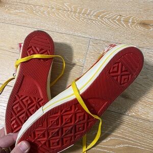 Fun and stylish red checkered high-top sneakers for kids. Perfect for adding a pop of color to any outfit.