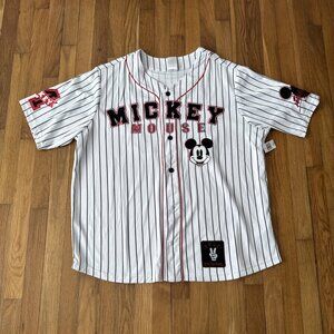 Disney Parks True Original Mickey Mouse Pinstripe Baseball Jersey #28 Size XXL