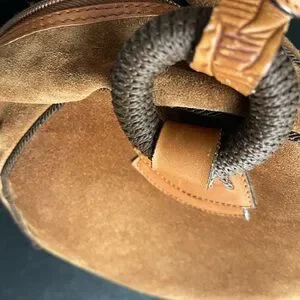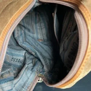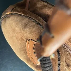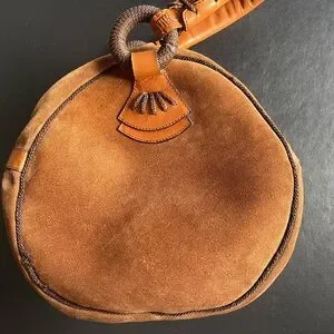 For sale from my personal collection a vintage IL Punto Rossi Suede Leather Circle Round Handbag Purse Brown