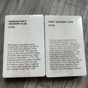 Each deck highlights a Revolutionary War flag with detailed historical notes