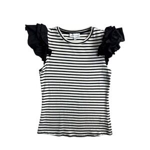 Gibson Latimer Women's Black and White Striped Ruffle Cap Sleeve Top S/M