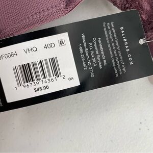 NWT Bali 40D Smoothing Lace Plum Foam Cup Stretch Adjustable Straps Back Bra