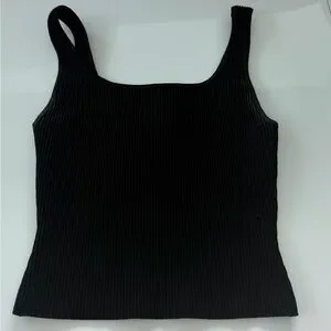 Chic black ribbed camisole. Ideal for layering or wearing alone.