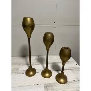 Set of three solid brass candlesticks. Made in India. Top is removable. Goid pre-owned condition.