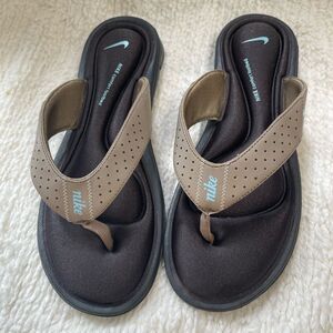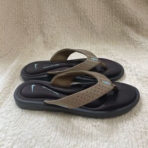 Nike Comfort Cushioned Footbed Khaki,brown & mint blue Thong Sandals SZ10
