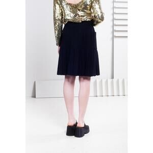 Chanel Vintage Black Pleated Knee Length Skirt w/ Pockets