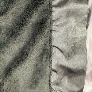 2. Little Giraffe gray satin border featuring sherpa finish on one side and super soft satin finish on the other. Size 29x35
