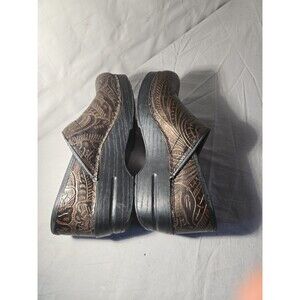 Dansko Floral Brown Leather Tooled Wedge Slip On Clog Shoe Womens 37 US.7 Nurse