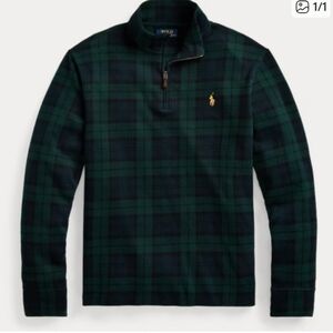 Ralph Lauren Men's Green and Black Plaid Quarter-Zip Sweatshirt