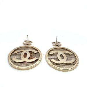 Chanel Coco Mark Mesh Round Earrings Gold Color