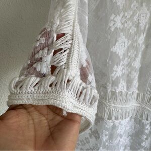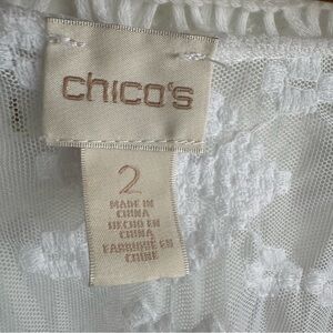 🩵Chicos 2 White Lace Top Fringe Kimono Crochet Boho Festival Cottagecore Large