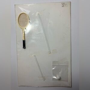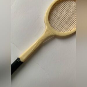 •Tennis Racket: Cream-colored plastic with black handle. Features the authentic circular manufacturing mold mark on the throat.