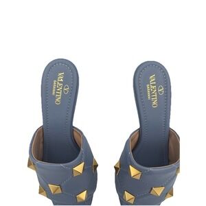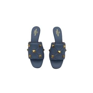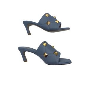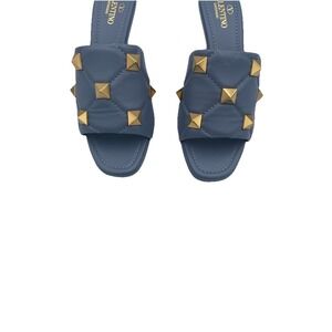 Valentino Garavani Blue Stone Roman Stud Quilted Slide Sandals Size 38.5 US 8.5