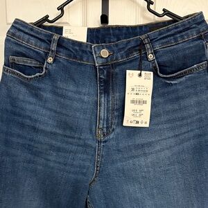 Chic wide leg jeans by Zara. Dark blue hue. Perfect for versatile styling.