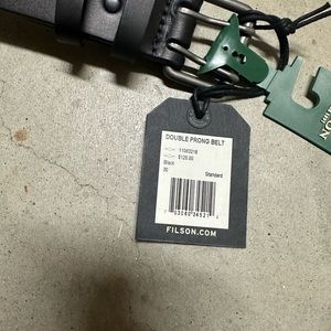 NWT Filson Double Prong Belt Black Bridle Leather Made in USA Mens