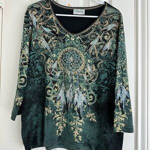NWOT vintage Cactus Bay top with sequins dreamcatcher and feathers size XXL