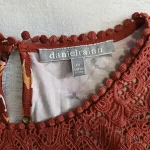 Daniel Rainn Crochet pleated lace trim long sleeve shirt Stitch Fix Size PS