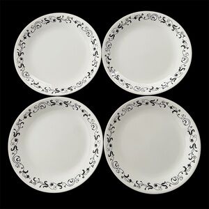 Corelle - Set of 4 Vitrelle Garden Getaway Black and White Floral Dinner Plates