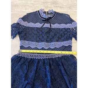 FEW MODA New York Navy Blue Lace Tiered Midi Dress Short Sleeve Mock Neck XL