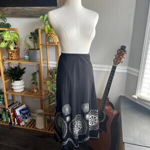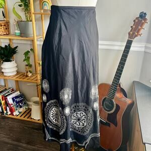 Vintage Y2K Art to Wear Black Geometric Silk Cotton Maxi Skirt Size 10 Medium