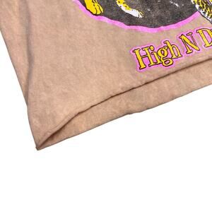 Def Leppard High N Dry Cut Off Crop T-Shirt Size Small Tan Pink Grunge Leopard