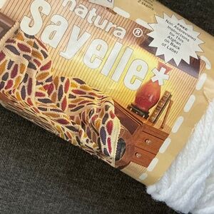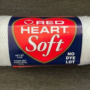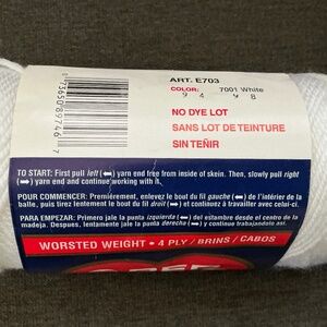 White Yarn - Red Heart Brand 6 Full/Almost Full Skeins, 1 Almost Full Skein Natura Sayelle Brand, and multiple balls and remnants of additional white yarn. The six Red Heart Soft skeins are 100% acrylic. Full labels are attached and are pictured in the photos for additional information. The Natura Sayelle Brand yarn notes the instructions for the afghan pictured on its label are included on the back of the label. Fantastic supply of white yarn to work on your next project! I have additional yarn in other listings, please bundle and save! See photos.