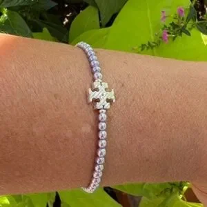 Tory Burch Lilac Beaded Slider Bracelet w/silver accents - NEW