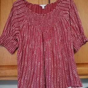Stylish and comfortable red patterned top for women. Perfect for casual outings or a day at the office.
