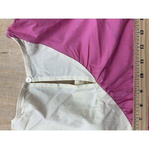 The Heyson Ruffle Flair Tiered Dress in a color block design of pink and orange is a stylish and lightweight option for summer and spring occasions. This boho-inspired dress features a collared neckline and short sleeves with a button closure for easy wear. Made from a blend of polyester and spandex, this A-line dress with ruffle accents is perfect for travel or casual days out. Perfect for those who love the summer/beach theme, this dress in size L is a must-have for women looking for a trendy and comfortable piece with a touch ofAnthropologie style. Puff sleeves