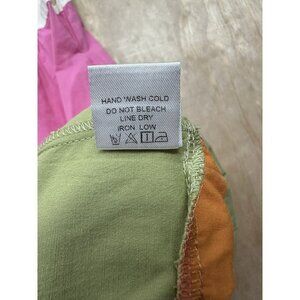 Heyson Ruffle Flair Tiered Dress Color Block Boho Anthropologie Pink Orange L